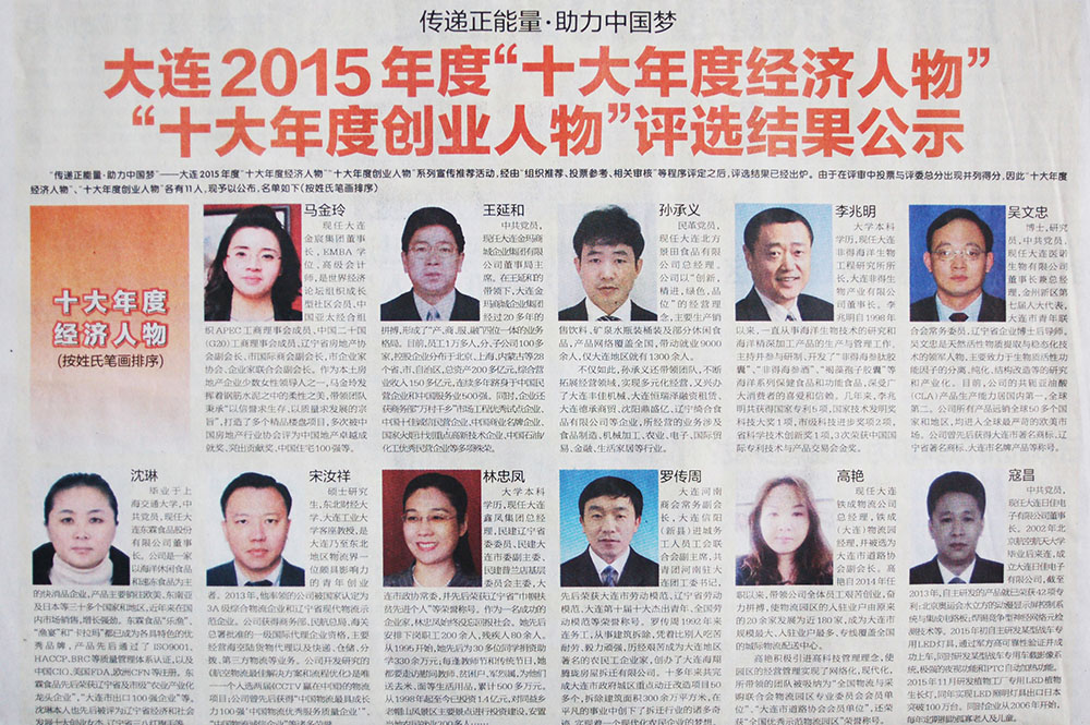 4月18日,大連“十大年度經(jīng)濟(jì)人物”隆重揭曉,作為中國(guó)海參精深加工領(lǐng)軍企業(yè)的掌門人,大連非得生物公司董事長(zhǎng)兼總經(jīng)理李兆明當(dāng)選大連“十大年度經(jīng)濟(jì)人物”。